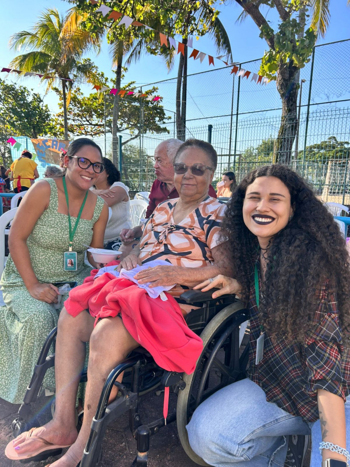 Visivelmente emocionada, Capituna falou: “Graças ao SAD, as meninas (referindo-se à equipe do serviço) estou aqui. Me sinto alegre, leve. Elas foram lá com o carro adaptado me buscar em casa e me trouxeram. Meus filhos nunca me levam a festas”. Ela estava acompanhada da equipe do SAD, a assistente social Janine Fraga, a educadora social Yasmin Almeida e da psicóloga Barbara Aparecida.