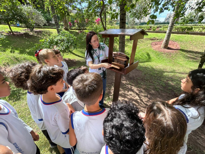 No terceiro momento, as atividades seguirão para o meliponário educativo, onde os jovens conhecerão espécies de abelhas sem ferrão, suas colônias e seus papéis fundamentais na polinização e no equilíbrio ambiental. Para encerrar, o jogo da memória das abelhas sem ferrão estimulará o aprendizado de forma lúdica, reforçando informações sobre comportamento, diversidade e preservação desses insetos essenciais.