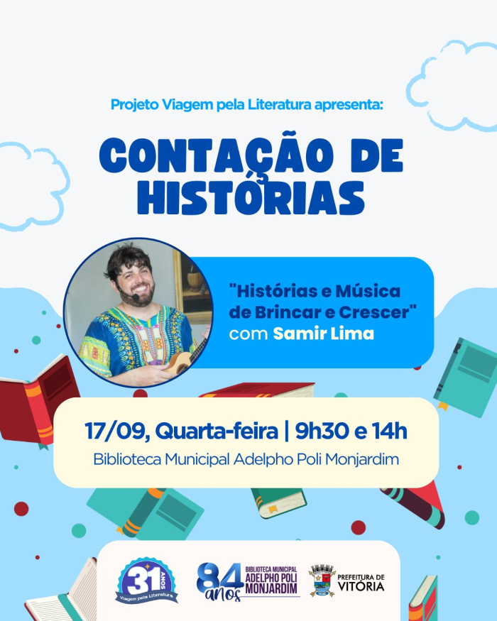 A Biblioteca Municipal Adelpho Poli Monjardim convida todas as crianças para embarcarem numa viagem mágica pelo mundo da literatura, com a atividade “Histórias e Música de Brincar e Crescer”, que será realizada nesta quarta-feira (17), na sede da instituição, localizada no Centro Histórico de Vitória. A ação se dará em duas sessões: às 9h30 e às 14 horas.