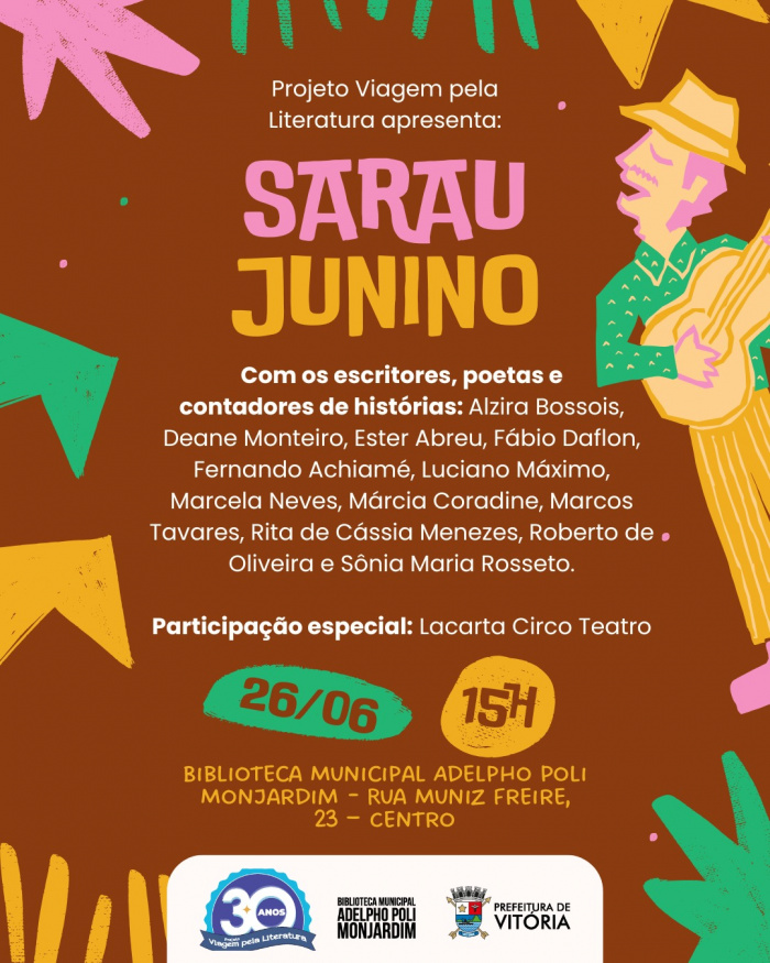 No embalo das tradições juninas, a Biblioteca Municipal Adelpho Poli Monjardim, equipamento cultural da Secretaria Municipal de Cultura (Semc), realiza na próxima quinta-feira (26), às 15 horas, o “Sarau Junino: poesia, história e música”. O evento faz parte do projeto Viagem pela Literatura e promete encantar o público com momentos de declamações, narrativas e apresentações musicais.