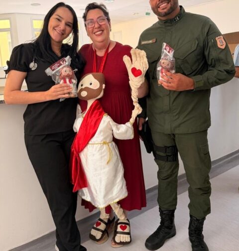 Governo ES – Sejus entrega amigurumis de Jesus a recém-nascidos