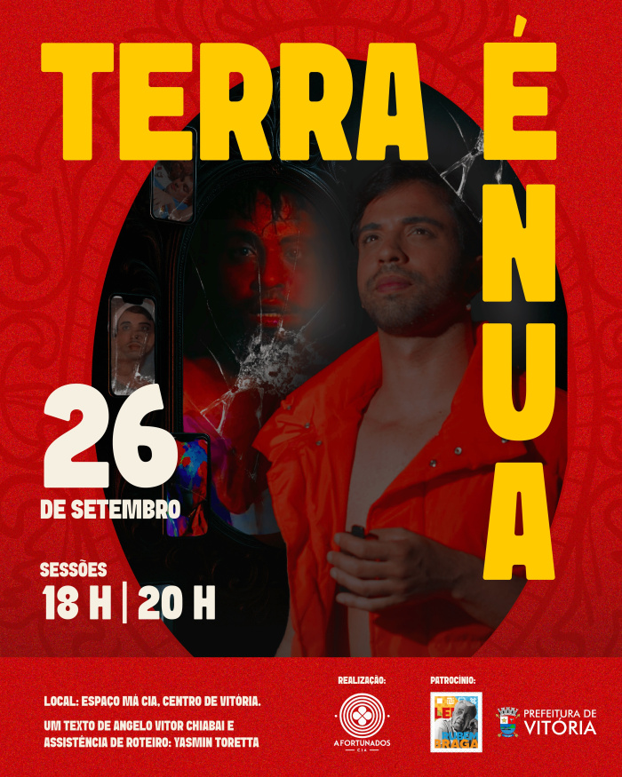 Na próxima sexta-feira (26), o “Espaço Má Companhia”, no Centro de Vitória, recebe a peça “Terra é Nua”, da Cia Afortunados. Com duas sessões gratuitas, às 18 e às 20 horas, o espetáculo convida o público a refletir sobre as ilusões digitais, a tênue fronteira entre verdade e mentira e o impacto da tecnologia na vida contemporânea.