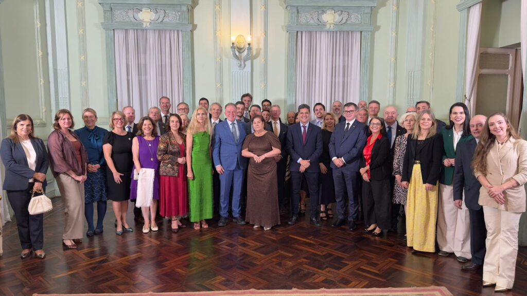O governador do Espírito Santo, Renato Casagrande, recebeu, nessa terça-feira (23), um grupo de 17 embaixadores de países europeus para um evento sobre “Federalismo Climático, Estratégias de Descarbonização e Investimentos Verdes”. A embaixadora da União Europeia no Brasil, Marian Schuegraf, também participou do encontro no Palácio Anchieta, em Vitória. O evento foi uma possibilidade de diálogo e cooperação interinstitucional entre o Consórcio Brasil Verde, presidido por Casagrande, e os Estados-Membros da União Europeia.