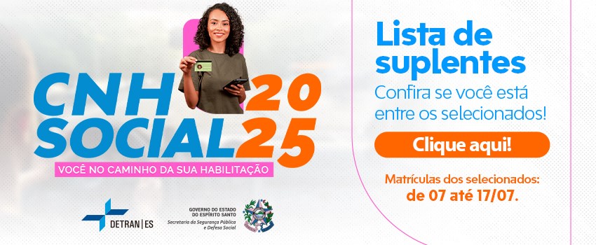 O Departamento Estadual de Trânsito do Espírito Santo (Detran|ES) divulgou, nesta segunda-feira (07), candidatos suplentes na primeira fase do programa CNH Social 2025. São 1.125 novos contemplados que não foram selecionados inicialmente, mas que, agora, podem garantir a carteira de habilitação de forma gratuita por meio do programa. Confira a lista de suplentes.