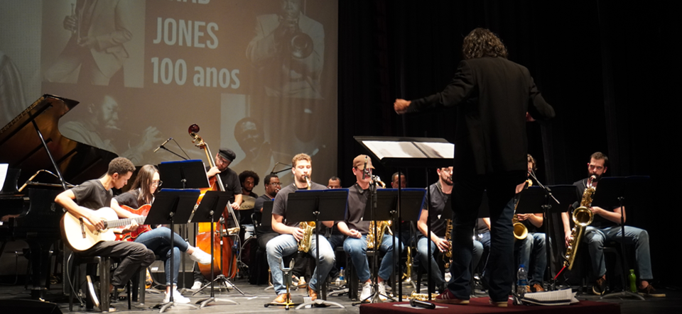 O concerto Fames Jazz Band é mais uma realização da parceria cultural do Teatro Sesc Glória com a Fames.