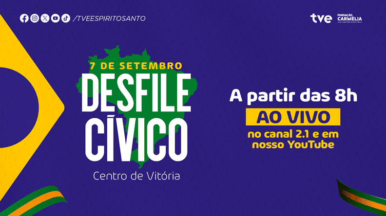 A TVE transmite, ao vivo, neste domingo (07), a partir das 8 horas, o tradicional Desfile Cívico-Militar de 7 de Setembro, diretamente da Avenida Marechal Mascarenhas de Moraes (Beira-Mar), em Vitória. A transmissão reforça o compromisso da emissora pública com a valorização da história, da cidadania e das tradições que fortalecem a identidade capixaba.