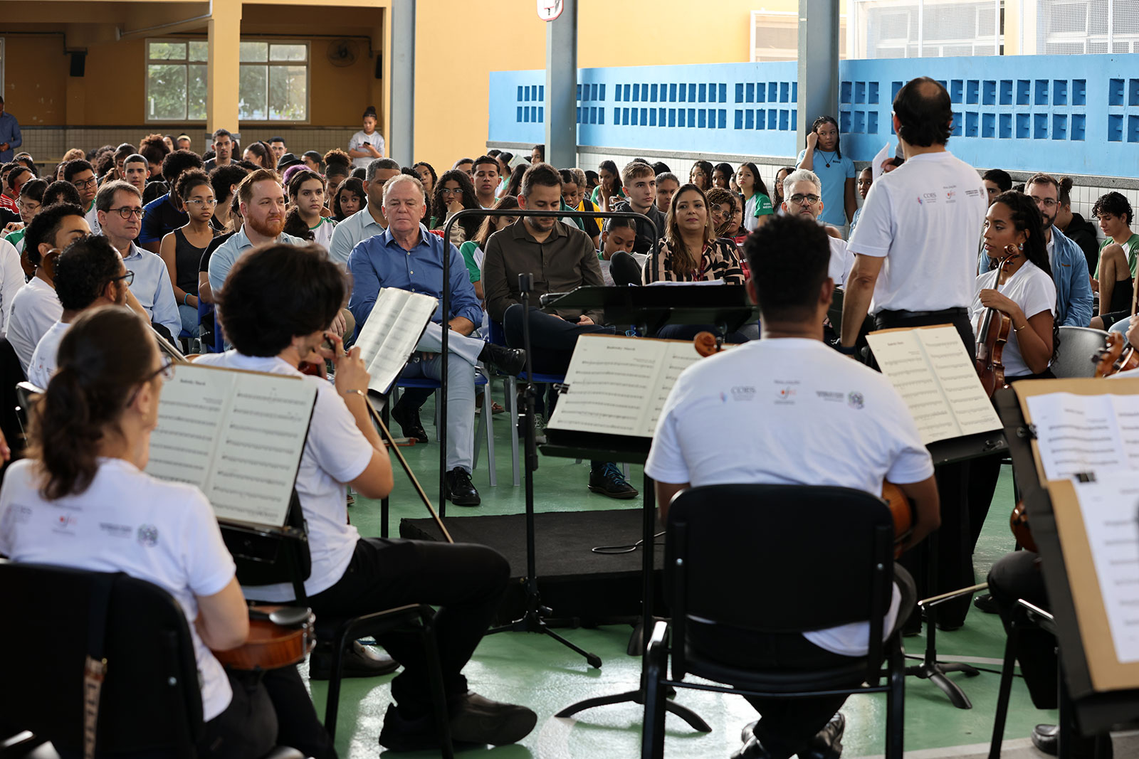 “É importante trazer nossa Orquestra Sinfônica para as escolas, pois essa apresentação pode fazer com que alguns dos alunos sintam vontade de aprender a tocar um instrumento e quem sabe um dia estar se apresentando para os futuros alunos da nossa rede. Nossa Faculdade de Música é uma das mais antigas e mais importantes do mundo. Essa ação faz parte do Programa Estado Presente, já que a segurança pública não se faz apenas com o policiamento ostensivo. É preciso levar infraestrutura, esporte e lazer. Neste caso, trazendo a cultura que é um grande instrumento para cultivar a paz”, afirmou o governador.