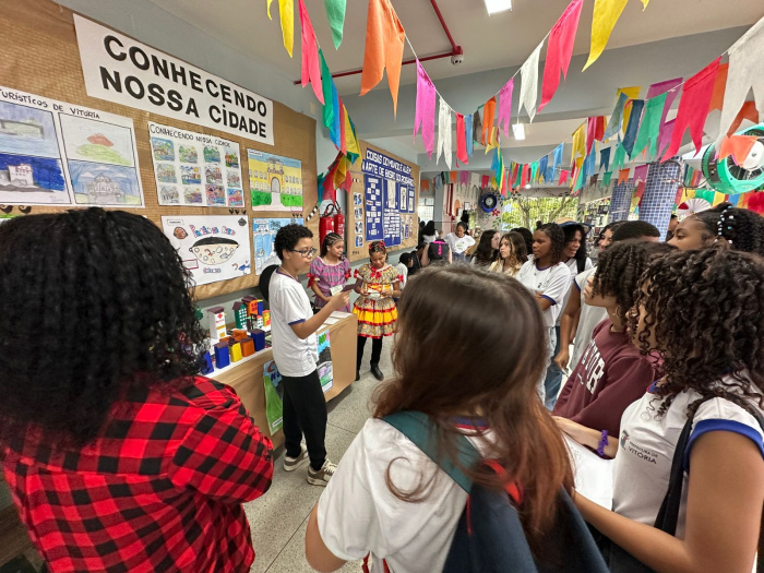 O evento ocupou vários espaços da unidade, como quadra, corredores e o pátio interno, e transformou a escola em uma verdadeira mostra de talentos e experiências. Apresentações culturais, como quadrilhas juninas e danças temáticas, se somaram às exposições e encenações das eletivas desenvolvidas ao longo do semestre, em um formato dinâmico, prático e integrador.