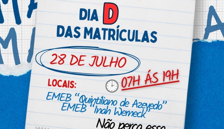 A Prefeitura de Cachoeiro de Itapemirim, por meio da Secretaria Municipal de Educação, realiza na próxima segunda-feira (28) o Dia D de matrículas da Educação de Jovens e Adultos (EJA). A ação acontece das 7h às 19h, em dois polos da rede municipal que oferecem a modalidade, com objetivo de facilitar o acesso ao ensino para quem deseja retomar os estudos.