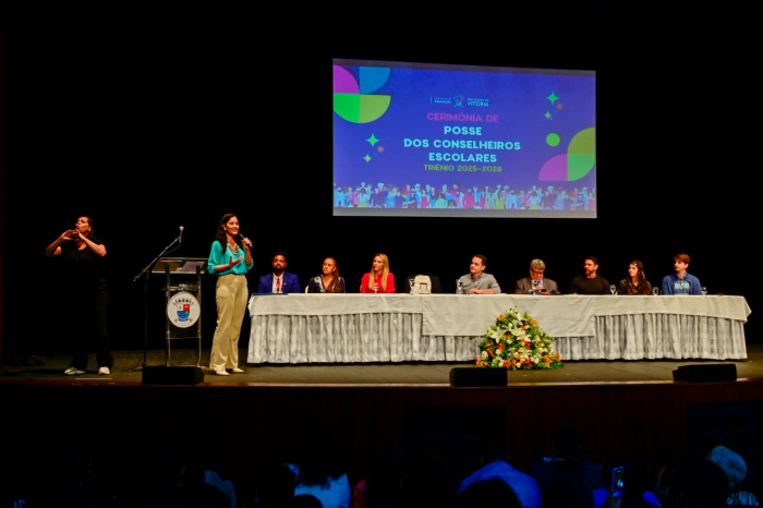 Em uma noite marcada pela valorização da participação democrática na educação, o Teatro Universitário da Ufes recebeu, nesta segunda-feira (11), a cerimônia de posse dos novos conselheiros dos Conselhos de Escola da Rede Municipal de Ensino de Vitória. Os eleitos em votação realizada no dia 28 de maio, iniciam um mandato voluntário de três anos, com possibilidade de uma reeleição consecutiva.