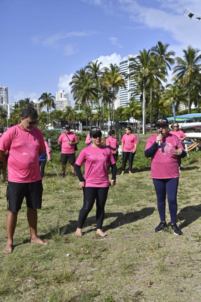 Com foco na promoção da saúde e na conscientização sobre o autocuidado, a ação reuniu dezenas de participantes em uma manhã de atividades como alongamento, dança, avaliação corporal, orientações nutricionais e ações educativas voltadas à prevenção do câncer de mama. A tradicional remada também fez parte da programação, reforçando a importância da atividade física como aliada da saúde.